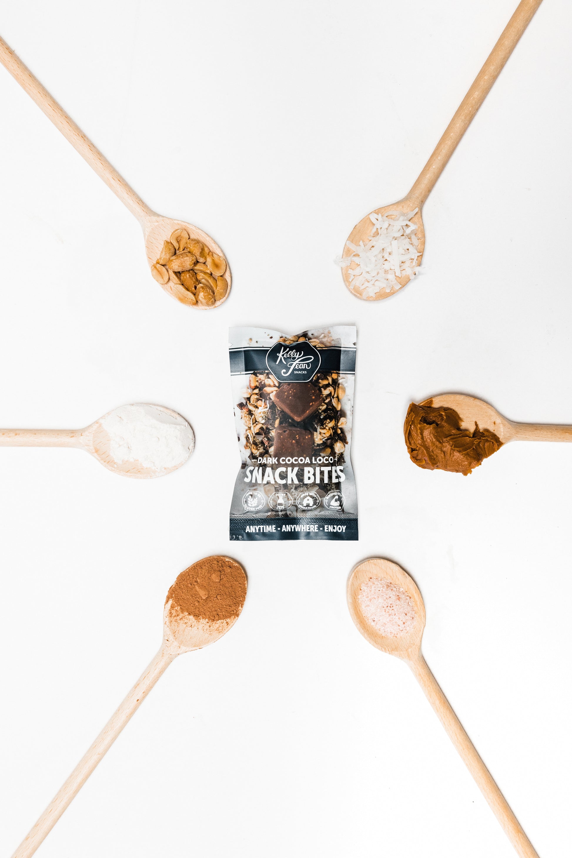 Not only is this snack absolutely indulgent, but are also snack guilt-free! The Dark Cocoa Loco bites contain 8 grams of protein, are dairy-free, gluten-free, soy-free, and egg-free! This flavor has a peanut butter base and sweetened with maple syrup. Toss a delicious Kelly Jean Snack into your bag before work, or enjoy a frozen treat straight out of the freezer when you get that midnight craving. However you want to snack, Kelly has the snack for you! Each individual pack contains 2 bites, the perfect serving for that anytime-craving.